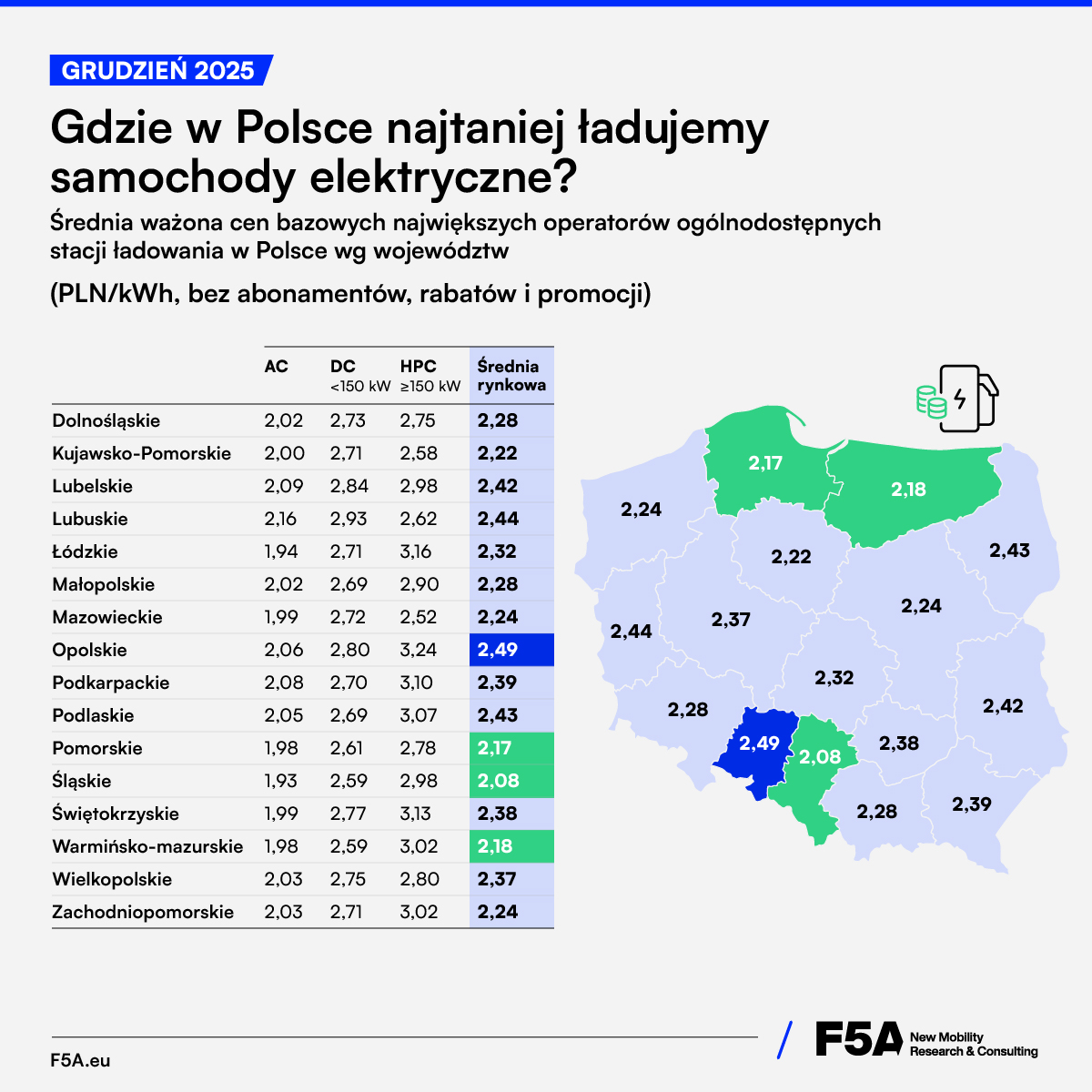 Gdzie w Polsce najtaniej naładujemy samochód elektryczny? | Podsumownie grudnia 2025 r.